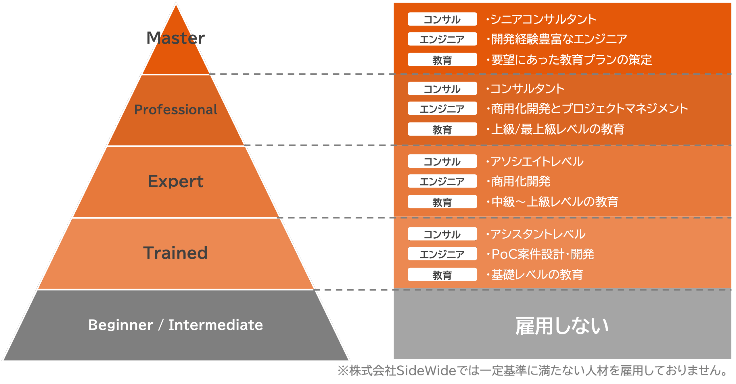 お客様のプロジェクト難易度に合ったスキルを持った適切な人材配置を実現し、プロジェクトの成功に向けて共に並走できる人材を提供します